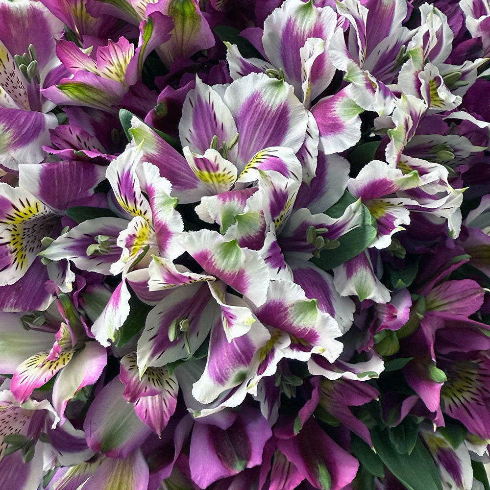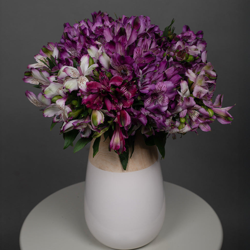 A playful mix of purple alstroemerias, this bouquet brings fun and energy to any celebration. Known for its incredible vase life, it stays vibrant for weeks, making every moment unforgettable.
