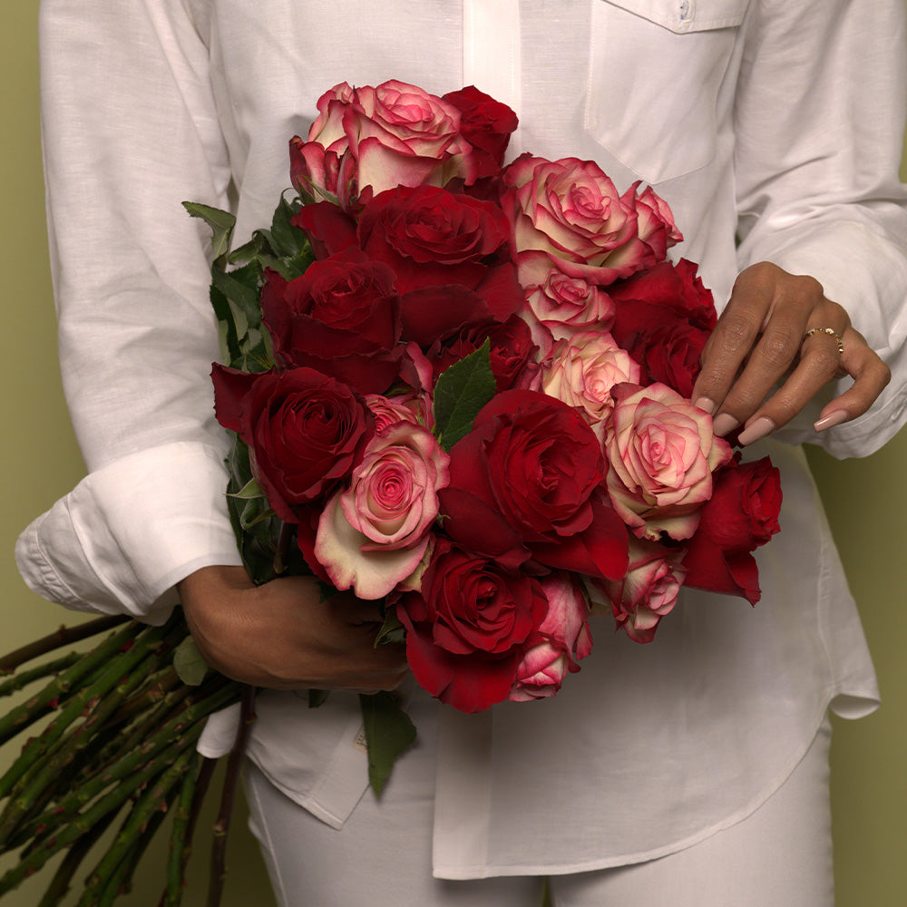 Red and white roses create a sense of balance, harmony, and unity. So, the beautiful petals of these two-tone roses make this bouquet especially romantic. And that's why it is an excellent gift for someone special in your life or yourself.