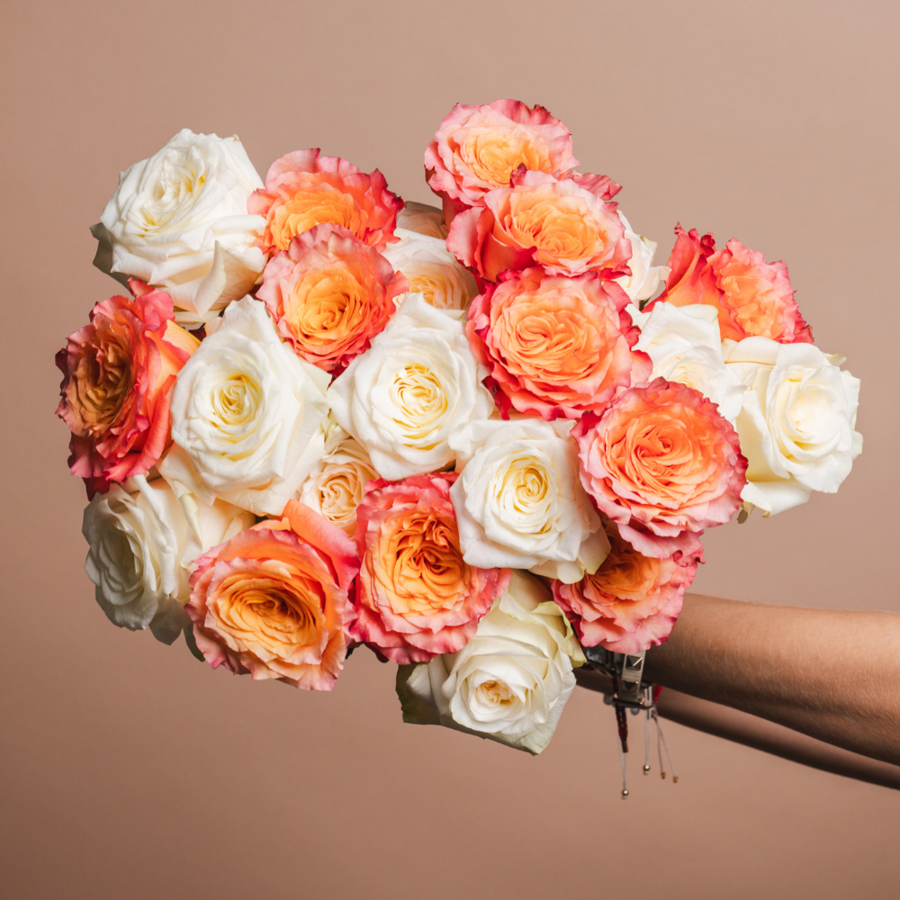 Water is essential for roses to keep their petals looking luscious and strong, and trimming at an angle can help them absorb water faster. It’s completely natural for roses to lose some of their moisture during transit, so don’t worry if your flowers aren’t quite ready for photos when they first arrive! Thirsty flowers can regain their form with a little quality hydration.