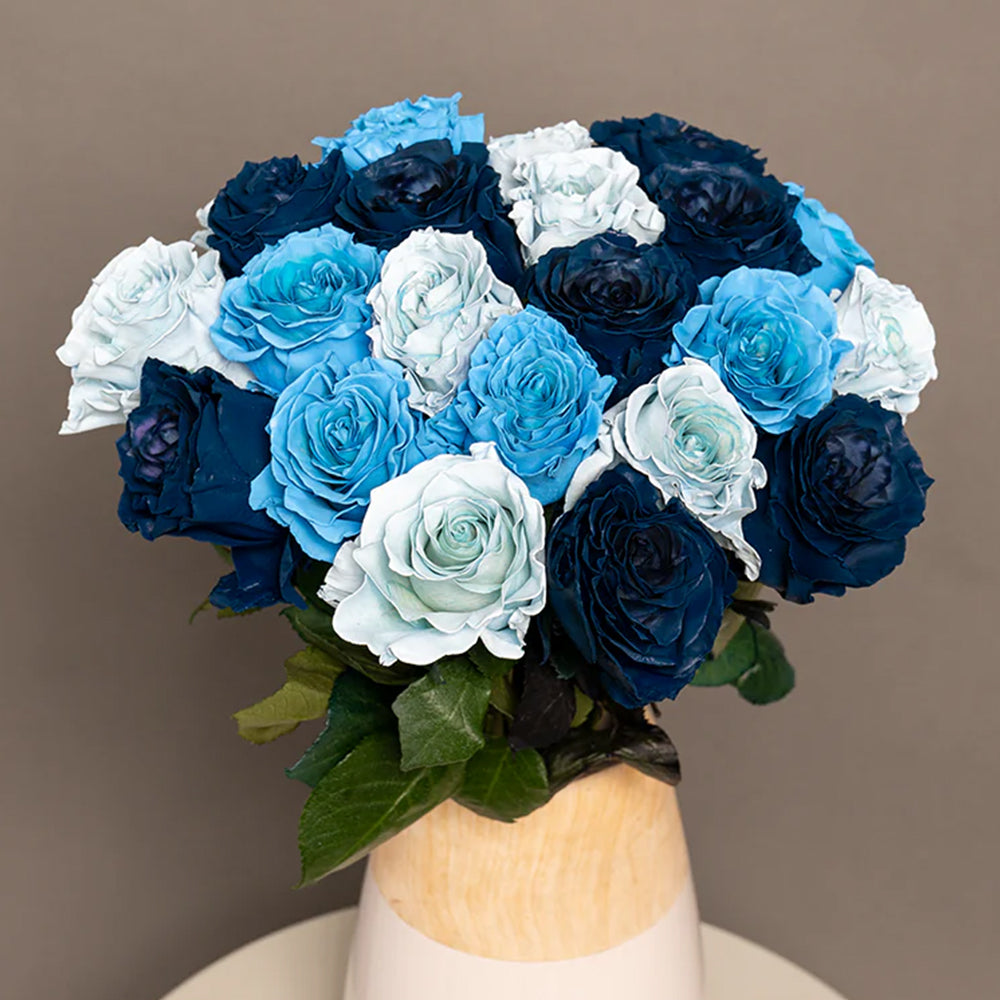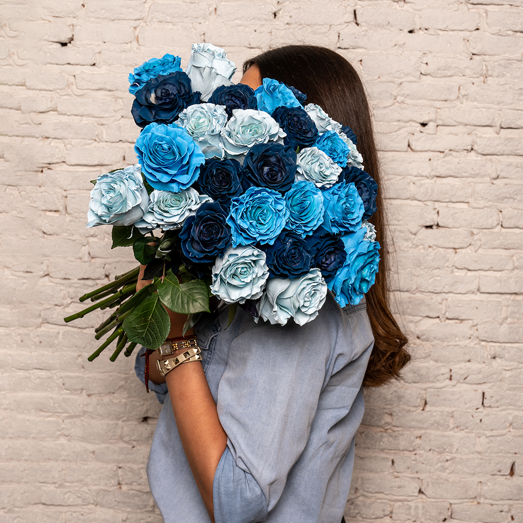 Often, blue flowers are used for holidays such as weddings, anniversaries, and birthdays. They inspire with authentic charm and create a sense of harmony. Roses are able to emphasize a person's individuality and elegance and lift your mood. Since ancient times, blue flowers have had their own powerful and intriguing symbolism. They have always been associated with trust, calmness, and extreme loyalty. The traditions have survived, and today, a bouquet of blue flowers is a true representation of balance and loyalty.