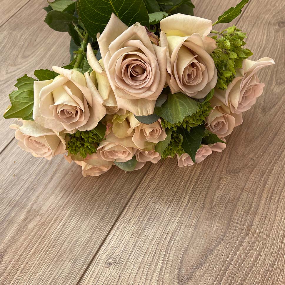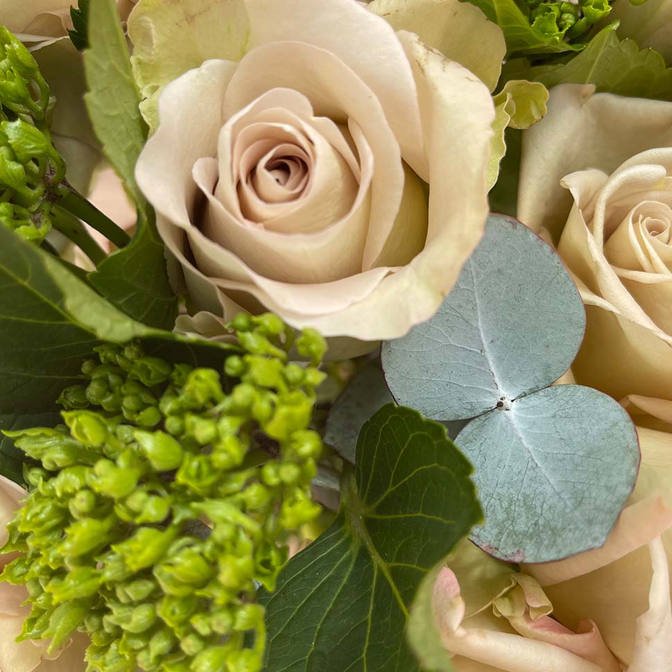 Arizona is a new and exclusive bouquet released in 2021, only found at our farms. Flaunting a unique, soft pink rose with a similar color to Quicksand and a generous bloom size, Arizona is an event planner favorite, especially for weddings and anniversaries. Sprigs of eucalyptus and fresh greenery add depth to this beautiful bouquet, making it an elegant choice for any occasion.