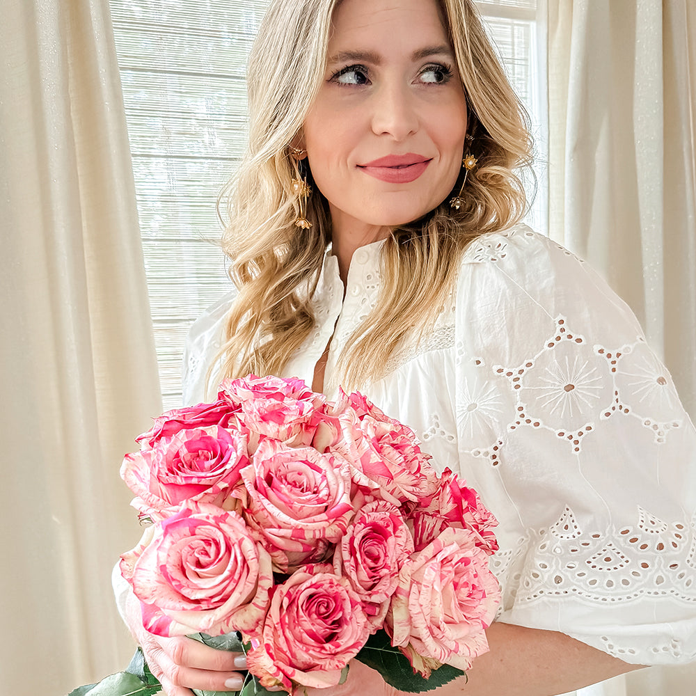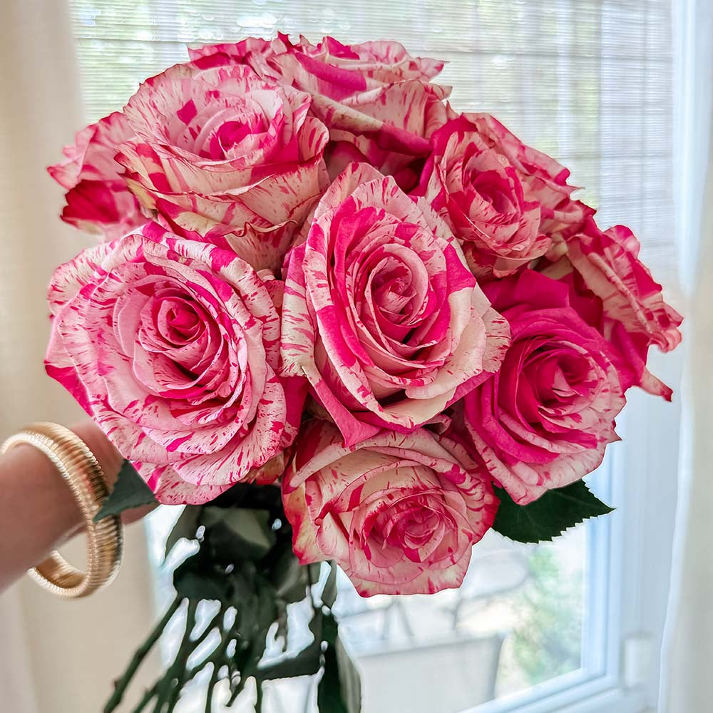 Water is essential for roses to keep their petals looking luscious and strong, and trimming at an angle can help them absorb water faster. It’s completely natural for roses to lose some of their moisture during transit, so don’t worry if your flowers aren’t quite ready for photos when they first arrive! Thirsty flowers can regain their form with a little quality hydration.