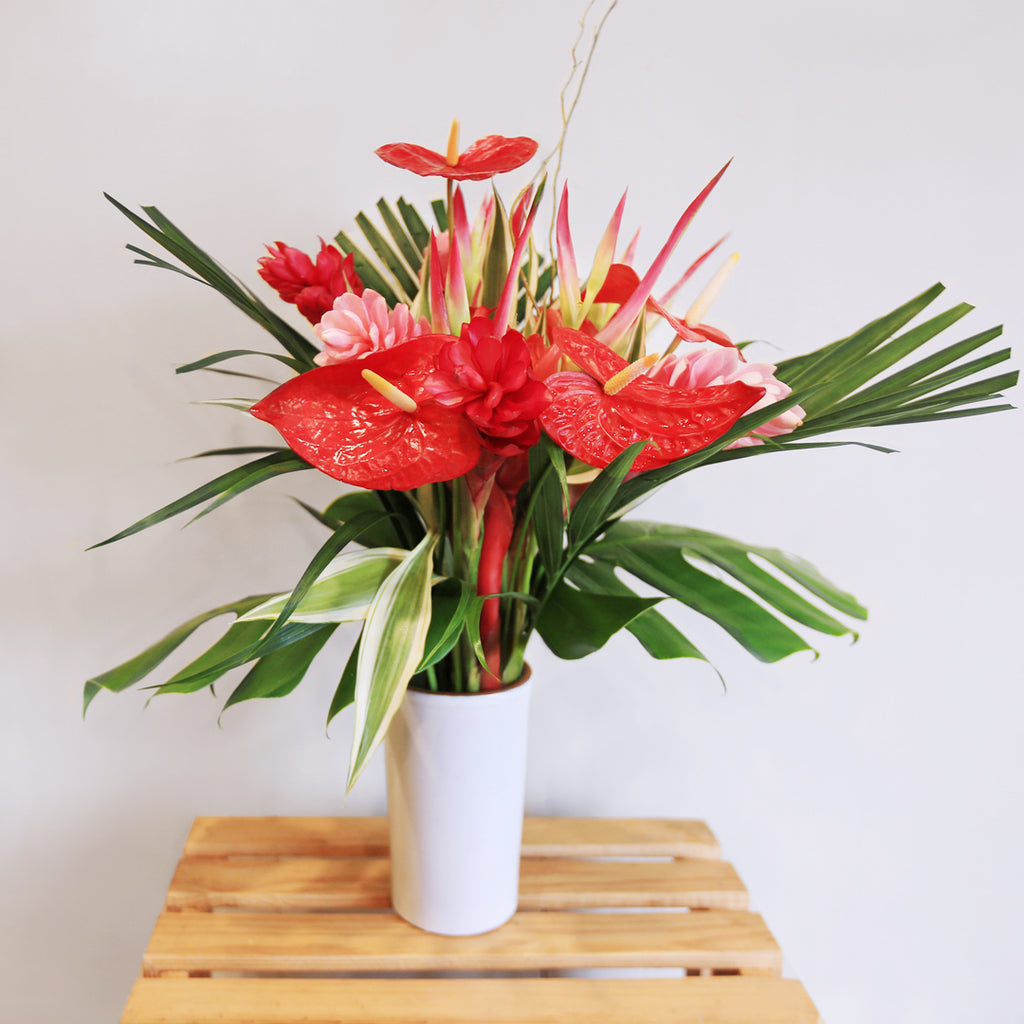 In conclusion, tropical arrangements offer a unique blend of elegance and exoticism, whether you opt for a bold red Hawaiian Love Bouquet or a softer pink bouquet of flowers. These stunning bouquets bring a touch of paradise to any occasion, making them a memorable choice for your next celebration or thoughtful gesture.