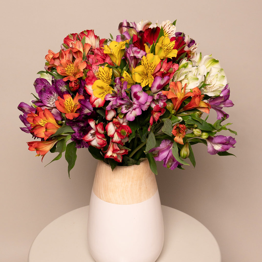 A fresh alstroemeria bouquet, Sempre Allegra, is an artist's palette brought to life in vivid colors. One composition can feature: