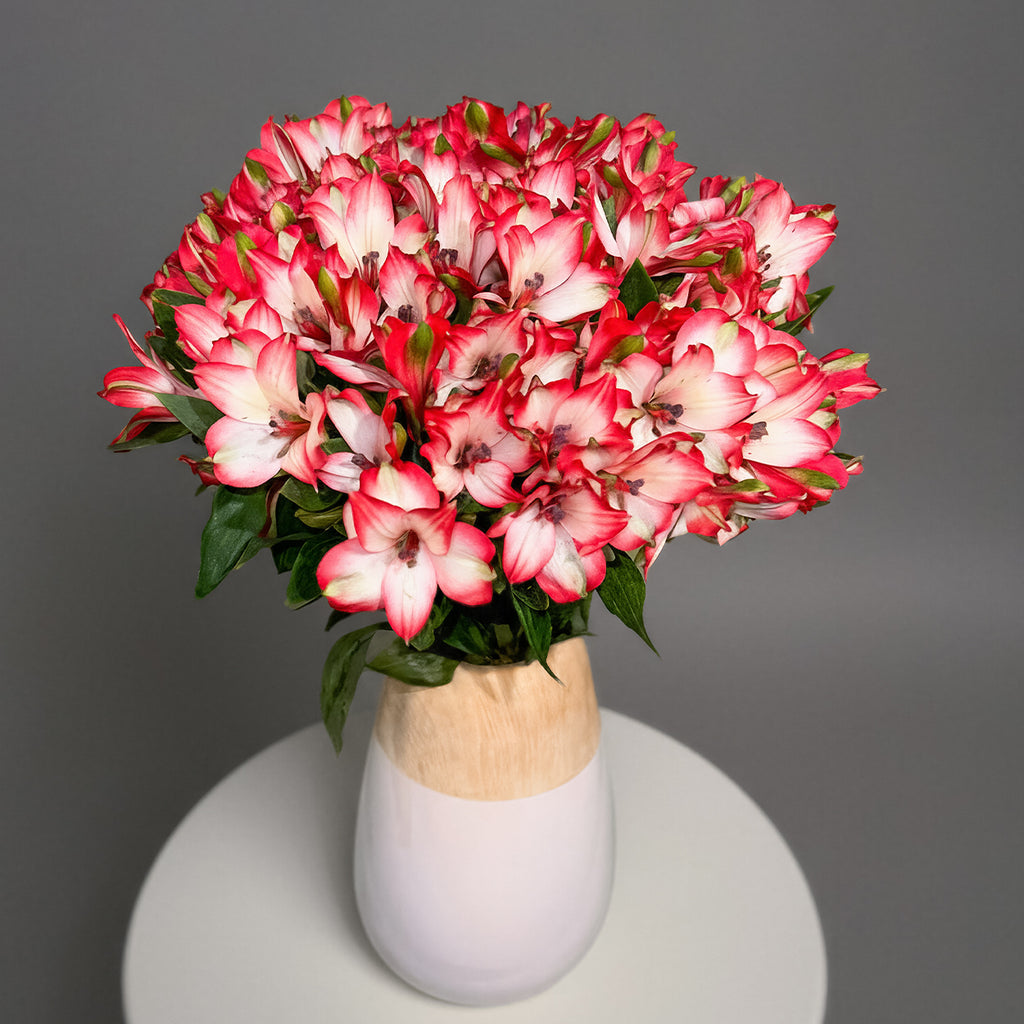 Our florists hand-select each stem, ensuring that the composition is perfectly balanced. Red alstroemerias symbolize passion and energy, pink ones symbolize tenderness and care, and their combination creates a harmonious image that is suitable for a wide variety of occasions: