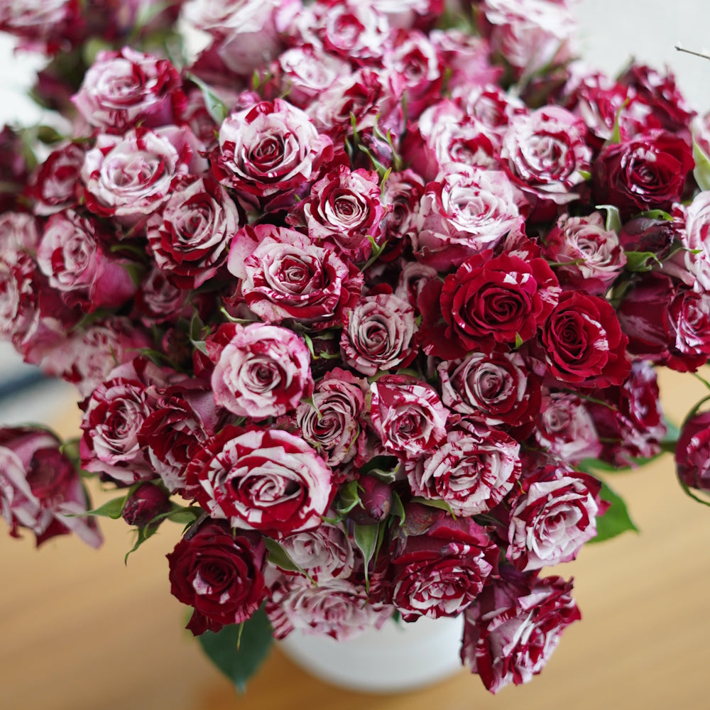 Rosaholics offers a wide variety of roses to the occasion: birthdays, weddings, anniversaries, etc. Only real, fresh flowers from our genuine rose farm are sold. Our flowers are always real and never artificial. To generate eye-catching displays and unusual hues, we rely on artistic approaches.