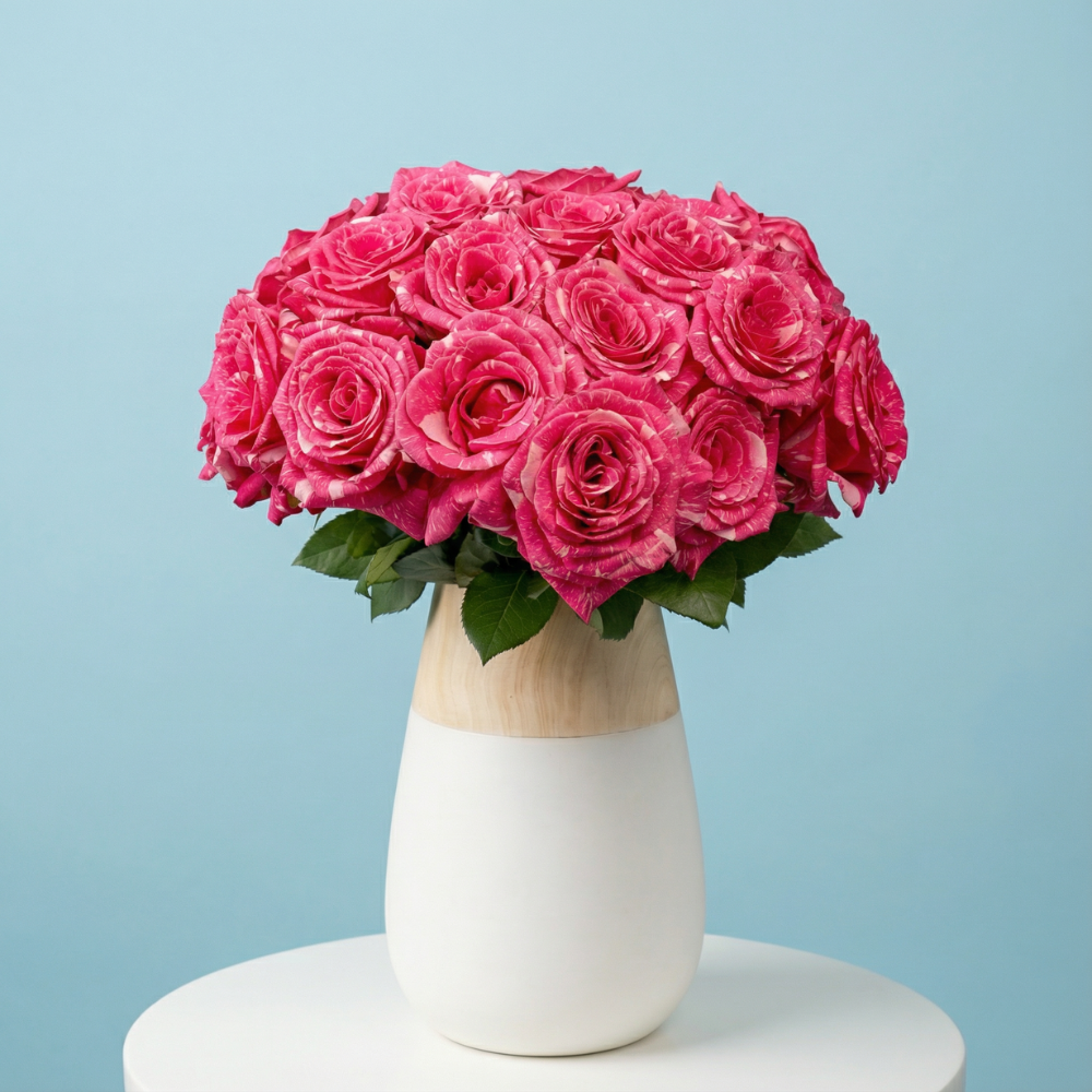 Ordering fresh flowers online has never been easier than with Rosaholics. Our hot pink striped roses are available to order from our website, and we'll deliver them straight to your door. Our online ordering system is quick and easy, and we offer one of the most suitable delivery options to suit your needs. Order today and experience the beauty of our hot pink striped roses for yourself. Still doubting? Contact us, and our florists will gladly help you in choosing the right bouquet!