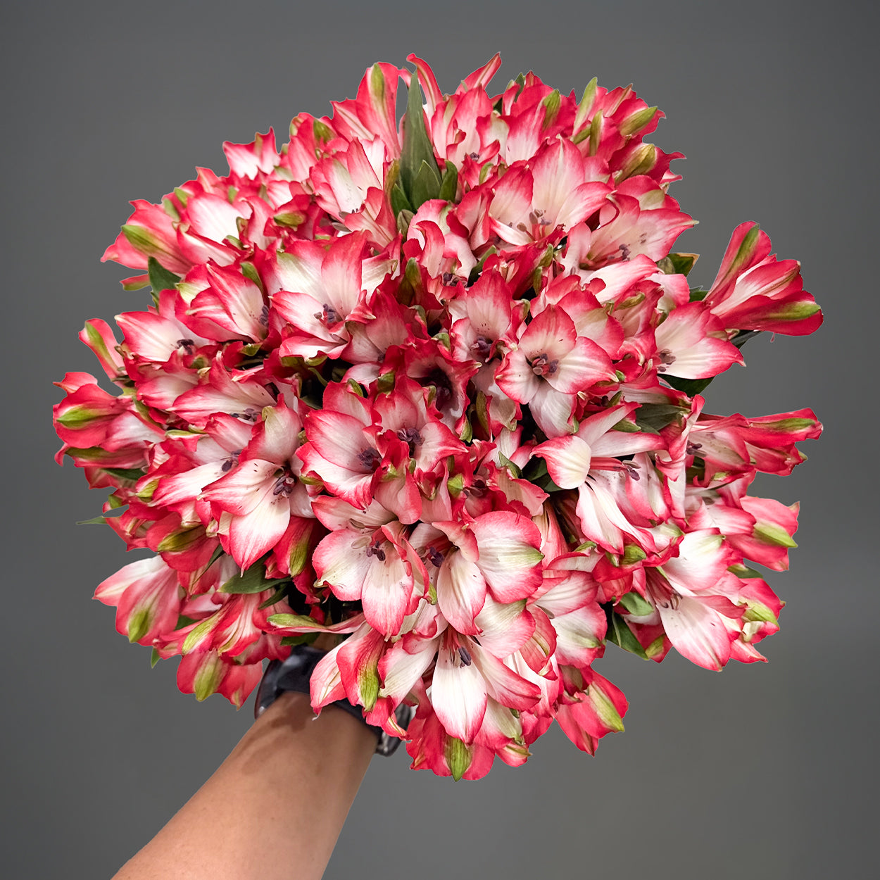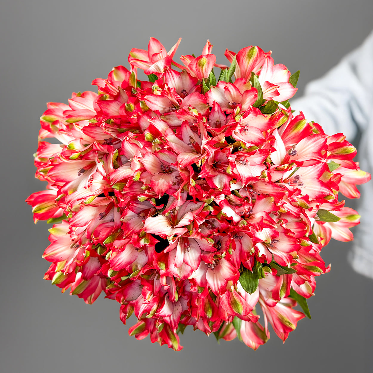 Our florists hand-select each stem, ensuring that the composition is perfectly balanced. Red alstroemerias symbolize passion and energy, pink ones symbolize tenderness and care, and their combination creates a harmonious image that is suitable for a wide variety of occasions: